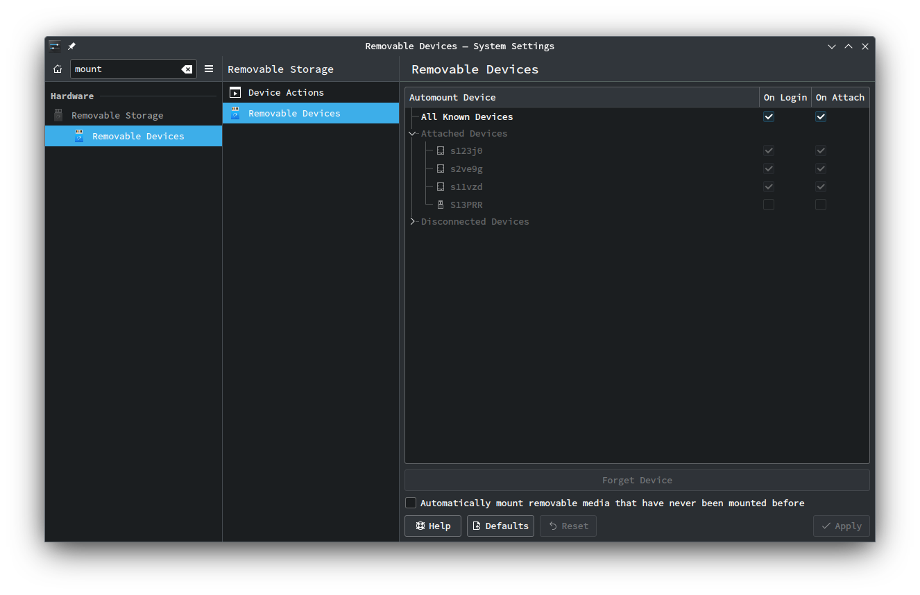 KDE System Settings > Removable Storage > Removable Devices needs a redesign based on UUIDs and labels.