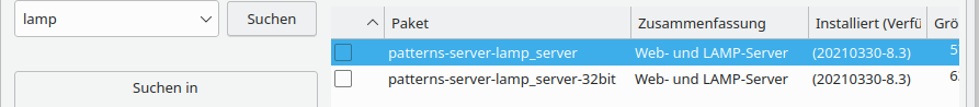 Oder über Pattern View. Egal wie du das findest, aber LAMP war schon immer da als Pattern. Und wenn man das nicht wußte, die individuelen Pakete findet man natürlich auch (wie apache, php, mariadb).