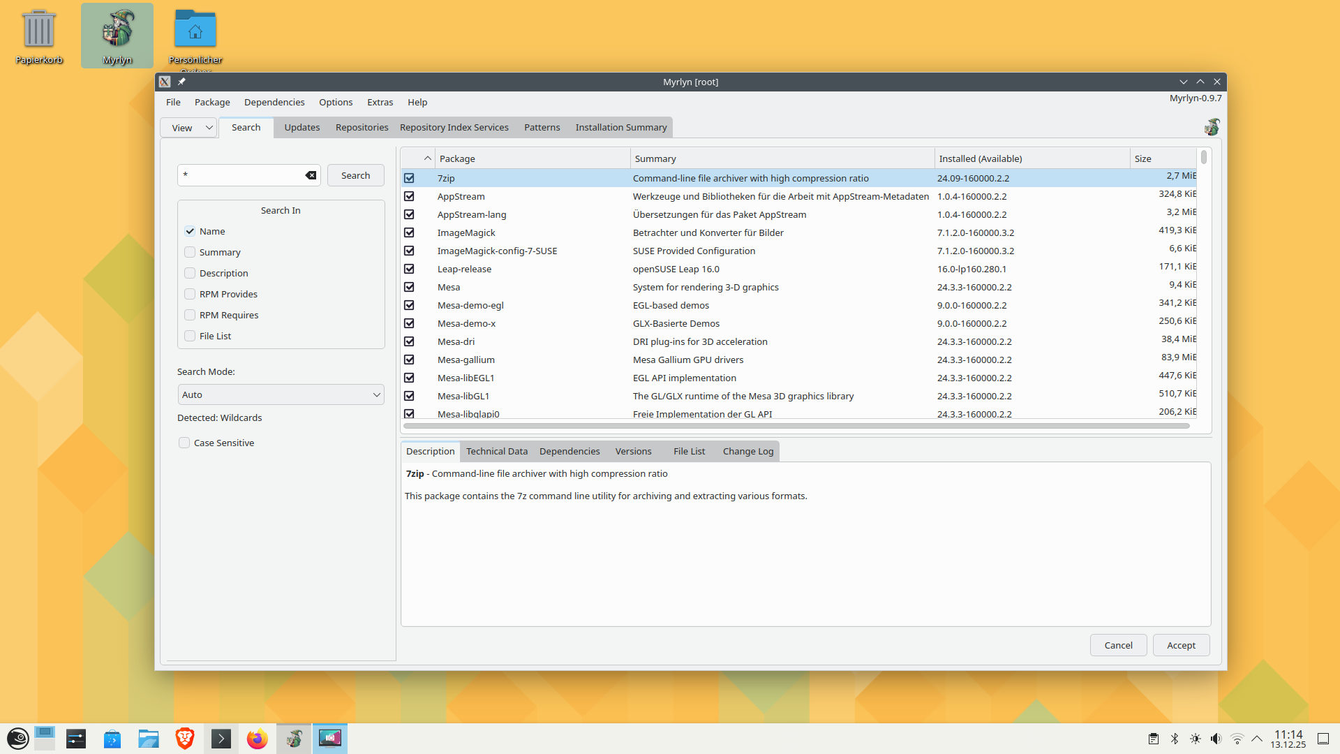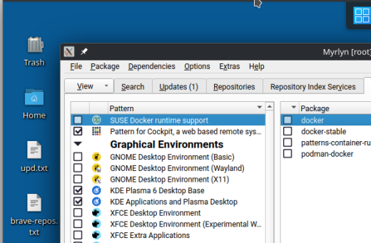 The first screenshot … I launched Myrlyn (root choice) from the KDE Plasma menu (yes, you have to enter the root password). Yuck (to me). No dark mode, etc.