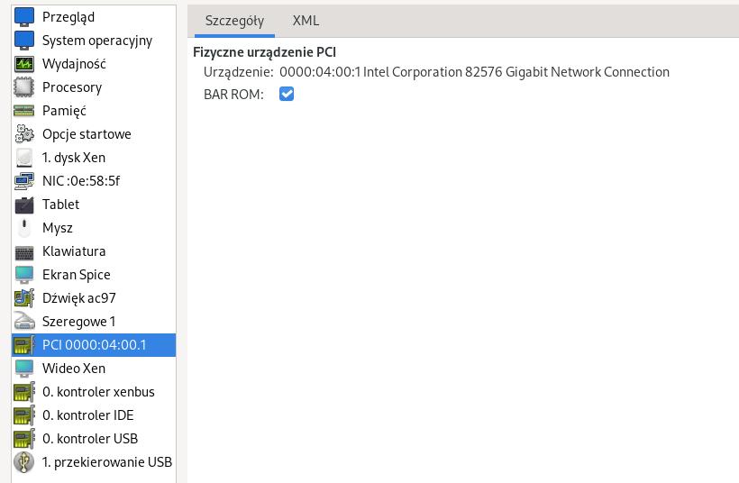 W obecnej chwili nie wiem jeszcze, jakie urządzenia PCI będę chciał przekazywać do docelowych wiemek na Xen. Jednak chciałbym wytestować, jakie konfiguracje będą mi odpowiadać, a jakie nie.