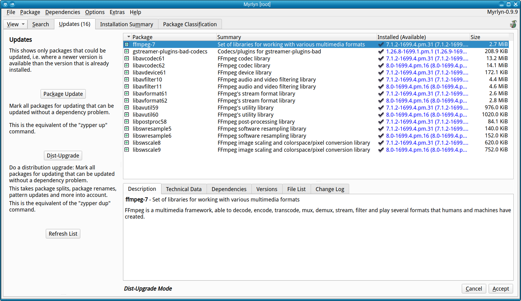 YaST software manager gives the options: