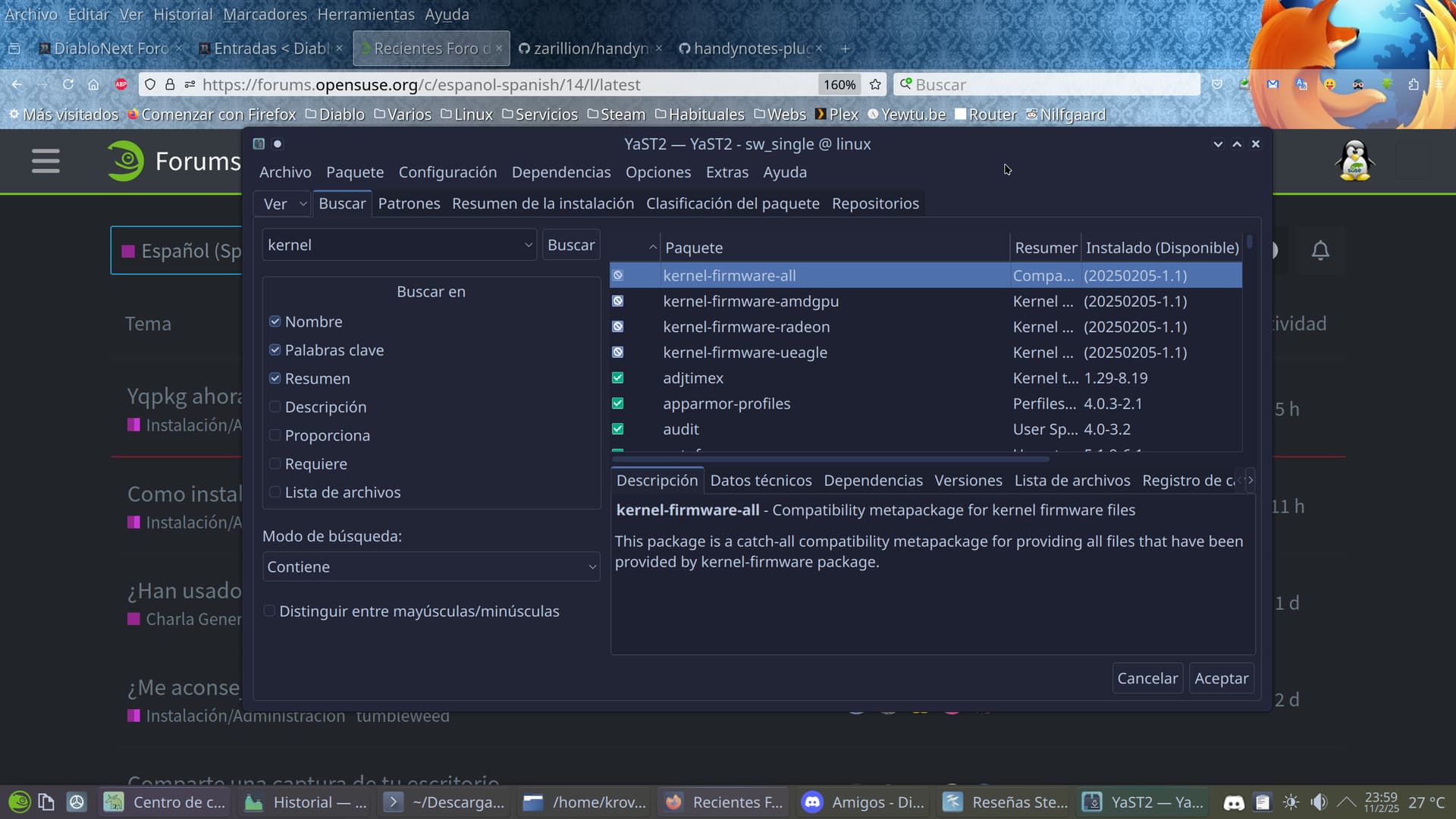 He estado usando Discover en casi todos mis laptops (con diversas distros, todas con Plasma 6), pero cuando las cosas se ponen difíciles o quiero hacer algo muy concreto , echo mano de la consola o Yast2.