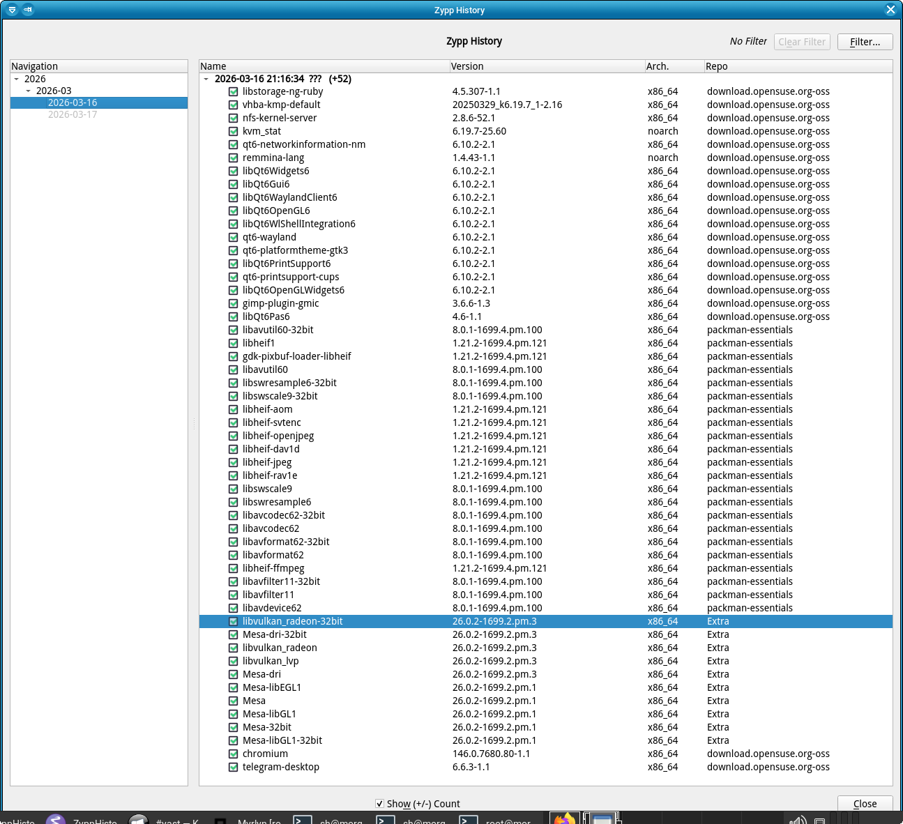 The pasted zypp history visualized: